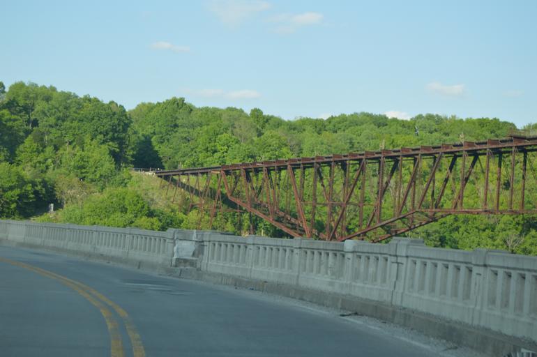 Keywords: Eastern end of bridge.jpg 04000789 38 10 25 N 85 50 45 W Northern side of the Tyrone Bridge which formerly carried the w Lexington Extension of the Louisville Southern Railroad Lexington Extension of the Louisville Southern Railroad over the Kentucky River between Lawrenceburg Kentucky Lawrenceburg and Versailles Kentucky Versailles in the U S state of Kentucky Built in 1889 it is listed on the National Register of Historic Places along with the rest of the Lexington Extension Photo is taken from the U S Route 62 bridge immediately downstream Own 2014-05-17 User Nyttend Nyttend Kentucky River National Register of Historic Places in Anderson County Kentucky National Register of Historic Places in Woodford County Kentucky Bridges over rivers in Kentucky Road bridges in Kentucky Railway bridges in Kentucky 1930s bridges in Kentucky 1880s bridges in Kentucky Built in Kentucky in 1932 Built in Kentucky in 1889 Bridges in the United States completed in 1932 Bridges in the United States completed in 1889 Abandoned railway bridges in the United States Deck truss bridges in the United States Iron truss cantilever bridges in the United States Iron truss railway bridges in the United States U S Highway bridges U S Route 62 0 3 kilometers bridges 0 5 kilometers bridges Concrete road bridges in the United States Pratt truss bridges Warren truss bridges Building-centered pictures by User Nyttend |