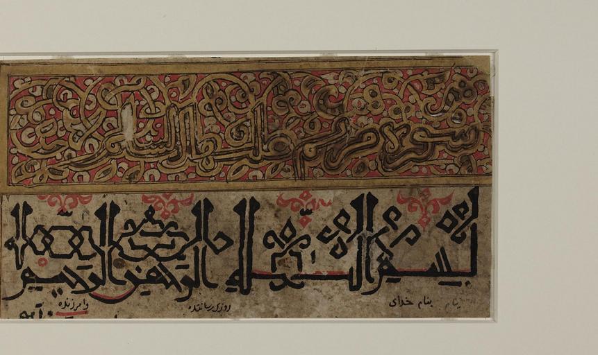 Keywords: Eastern Kufi and Persian Naskh.jpg en This fragment includes on its recto the last verse 110 of the 18th chapter of the Qur'an entitled Surat al-Kahf The Cave The heading of the next chapter 19 entitled Surat Maryam Mary appears on the fragment's verso see 1-90-154 150 V The Qur'anic text itself is executed on rag paper in old Persian naskh and provided with interlinear Persian translations Eastern Kufi and Persian naskh scripts are typical calligraphies practiced in Persian lands between the 11th and the 13th centuries It is rather rare to find eastern Kufi interlaced as the script tends to incline at an angle Nevertheless its high verticals or stems leave ample room for the elaboration of decorative motifs in the textual interstices Decorative elements include knots vine or leaf motifs plaits and interlaced stems which counterbalance the low curves of the writing with a filled space in the writing's upper zone This decorative technique not only presents calligraphy in an aesthetic manner but also ensures the clarity of the letters LOC-calligraphy ascs 235 Unknown Calligrapher 11th-13th centuries PD-Art Kufic style Qur'an manuscripts 11th century Naskh script Library of Congress Arabic Persian and Ottoman calligraphy collection |