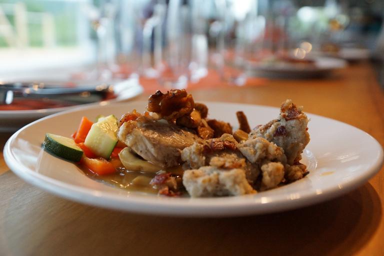 Keywords: eat plate glasses restaurant chicken nice prepared