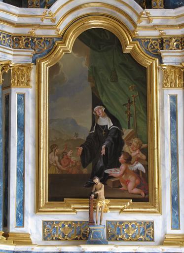 Keywords: Ebersmunster Abbatiale167.JPG Alsace Bas-Rhin Ebersmunster Église abbatiale Saint-Maurice Autel secondaire de Sainte-Odile XVIIIe own 2015 Ralph Hammann cc-by-sa-4 0 Artwork / Œuvre d'art / Kunstwerk oil canvas cm 158 90 Abbatiale Saint-Maurice Ebersmunster Autel secondaire de Sainte-Odile IM67007589 object history Ces tableaux d'autels signés par Franz Joseph Stoeber celui de sainte Scholastique date de 1781 celui de sainte Odile de 1807 remplacent les œuvres d'origine ornant les autels retables secondaires de 1730 ; les tableaux des couronnements ne sont pas signés mais datent également du 18e siècle other versions Ralph Hammann PD-old-100 accession number Photographs of Ebersmunster by Ralph Hammann Taken with Canon PowerShot SX20 IS Autel de Sainte-Odile Ebersmunster Objets monuments historiques in Bas-Rhin church paintings Baroque church paintings in Alsace Paintings of Christian saints in France 19th-century church paintings in Alsace Saint Odile 1807 oil on canvas paintings in France 1807 works in Alsace |