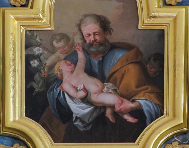 Keywords: Ebersmunster Abbatiale171.JPG Alsace Bas-Rhin Ebersmunster Église abbatiale Saint-Maurice Autel secondaire de Sainte-Odile XVIIIe Tableau du couronnement saint Joseph et l'enfant Jésus 1807 own 2015 Ralph Hammann cc-by-sa-4 0 Artwork / Œuvre d'art / Kunstwerk saint Joseph et l'enfant Jésus XVIIIe oil canvas Abbatiale Saint-Maurice Ebersmunster Autel secondaire de Sainte-Odile IM67007589 object history Ces tableaux d'autels signés par Franz Joseph Stoeber celui de sainte Scholastique date de 1781 celui de sainte Odile de 1807 remplacent les œuvres d'origine ornant les autels retables secondaires de 1730 ; les tableaux des couronnements ne sont pas signés mais datent également du 18e siècle other versions Ralph Hammann PD-old accession number Taken with Canon PowerShot SX20 IS Photographs of Ebersmunster by Ralph Hammann Autel de Sainte-Odile Ebersmunster Objets monuments historiques in Bas-Rhin church paintings Baroque church paintings in Alsace Paintings of Christian saints in France 19th-century church paintings in Alsace 1807 oil on canvas paintings in France 1807 works in Alsace Saint Joseph and Jesus Christ as a baby Paintings of Saint Joseph in France |