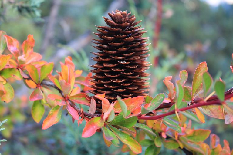Keywords: echinacea pine cone branches autumn color