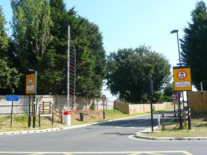 | Keywords: EclipseBRT-WychLaneJcn6-P1290246.JPG en An overview of the Eclipse BRT roadway Henry Cort Way entrance at Wych Lane showing the road entry restriction signage in day mode plus a level crossing style boom which is lowered at night whilst the busway is closed This image looks towards Gosport 2013-08-22 14 36 16 own Spsmiler cc-zero Eclipse Hampshire bus rapid transit Uploaded with UploadWizard | ||||