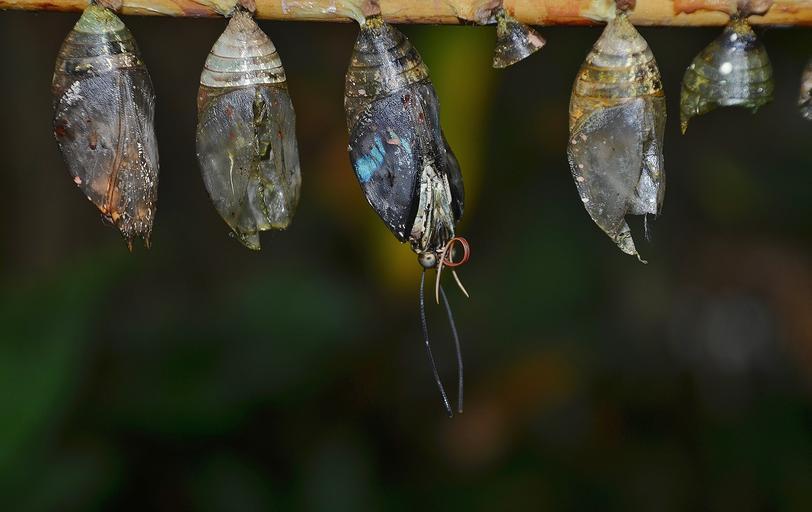 Keywords: eclosion cocoons larva larvae insect larvae macro nature parides iphidamas butterfly papilionidae