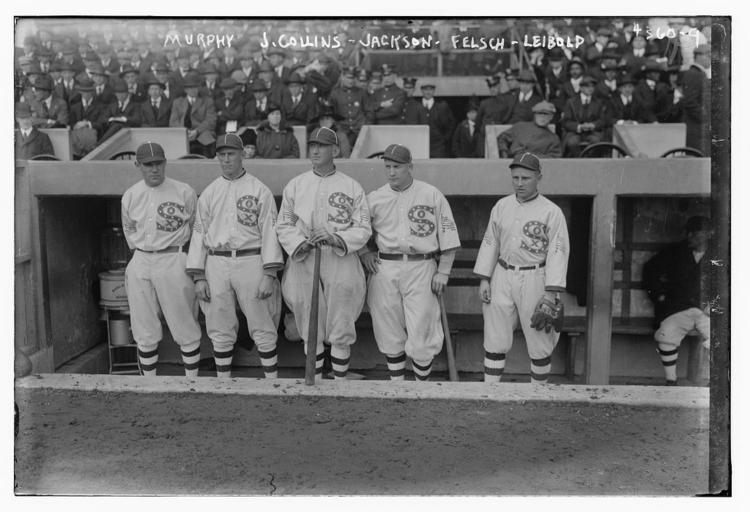 Keywords: (Eddie Murphy, John "Shano" Collins, Joe Jackson, Happy Felsch, and Nemo Leibold, Chicago AL at 1917 World Series (baseball)) (LOC) (23147025975).jpg Bain News Service publisher Eddie Murphy John Shano Collins Joe Jackson Happy Felsch and Nemo Leibold Chicago AL at 1917 World Series baseball 1917 1 negative glass ; 5 x 7 in or smaller Notes Original data provided by the Bain News Service on the negatives or caption cards Murphy J Collins Jackson Felsch Leibold Corrected title and date based on research by the Pictorial History Committee Society for American Baseball Research 2006 Forms part of George Grantham Bain Collection Library of Congress Format Glass negatives Rights Info No known restrictions on publication Repository Library of Congress Prints and Photographs Division Washington D C 20540 USA http //hdl loc gov/loc pnp/pp print hdl loc gov/loc pnp/pp print General information about the Bain Collection is available at http //hdl loc gov/loc pnp/pp ggbain hdl loc gov/loc pnp/pp ggbain Higher resolution image is available Persistent URL http //hdl loc gov/loc pnp/ggbain 25481 hdl loc gov/loc pnp/ggbain 25481 Call Number LC-B2- 4360-9 https //www flickr com/photos/library_of_congress/23147025975/ Eddie Murphy John Shano Collins Joe Jackson Happy Felsch and Nemo Leibold Chicago AL at 1917 World Series baseball LOC LOC-image ggbain 25481 https //www flickr com/people/8623220 N02 The Library of Congress http //www loc gov/rr/print/195_copr html noknown The Library of Congress Flickr Commons PD-Bain The Library of Congress https //flickr com/photos/8623220 N02/23147025975 2016-09-08 06 53 33 pd 1917 World Series |