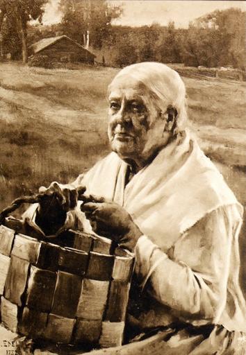 Keywords: Edelfelt Old Woman with Splint Basket 1882.JPG Old Woman with a Splint Basket Eukko pärekoreineen 1882 oil canvas 83 x 60 5 cm Ateneum Helsinki Finland Torsten Stjernschantz Suomen taidetta Ateneumin kokoelmissa Vihko 8 Black and white Kustannusosakeyhtiö Kirja Helsinki 1908 PD-old-100 PD-Finland50 Other versions Portraits by Albert Edelfelt Splint baskets |