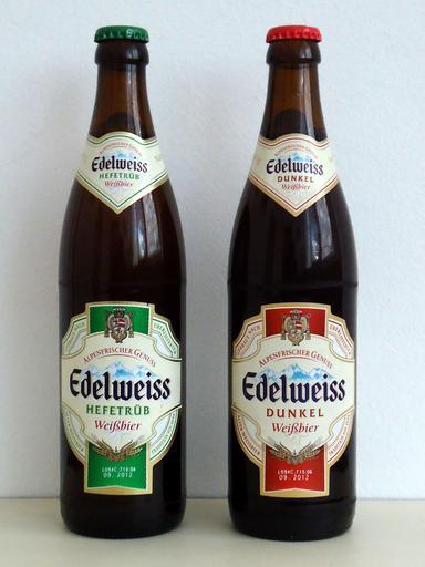Keywords: Edelweiss 2 beers.JPG en Edelweiss 2beers bg Ð‘Ð¸Ñ Ð¸ Edelweiss own LeeKeoma 2012-05-16 Cc-zero Edelweiss beer NRW beer bottles