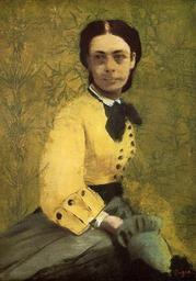 | Keywords: Edgar Germain Hilaire Degas 086.jpg Artwork en Princess Pauline de Metternich oil canvas en 41 x 29 cm Institution National Gallery London NG3337 Presented by the National Art Collections Fund 1918; returned from the Tate Gallery 1934 Stamped signature of the Degas studio sale The sitter was the wife of the Austro-Hungarian ambassador at the court of Napoleon III The portrait is based on a photograph of 1860 which the Prince and Princess used as a visiting card The floral backdrop was the artist's own invention http //www nationalgallery org uk/cgi-bin/WebObjects dll/CollectionPublisher woa/wa/work workNumber NG3337 The National Gallery London en about 1865 Creator Edgar Degas PD-old-auto 1917 Other versions Paintings by Edgar Degas in the National Gallery London Princess Pauline de Metternich Portrait paintings by Edgar Degas 1865 Front view portrait paintings of females 19th-century portrait paintings in the National Gallery London 1860s fashion Fashion in 1865 |