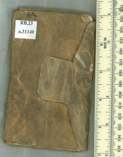 Keywords: Edinburgh almanack, for the year M.DCC.LX. Being leap year, and of the Julian period 6473. Edinburgh - Printed and sold by R. Fleming, and the widow of James Voy in the Advocate's Close, and - Upper cover (RB23a31149 ).jpg Style Pocket book; Caption Upper cover; Colour White / cream; Edge Unspecified exhibition history Decorative Technique Unspecified; Cover Material Parchment may include vellum With flap passing over fore edge and tucking into slit on upper cover Ink ms note on lower cover; Note book of John Reid my great grandfather ob 1811 object history Text 1760; Edinburgh; Unspecified object type Cc-zero place of creation Binding Scotland place of discovery Unspecified British Library image http //www bl uk/catalogues/bookbindings/LargeImage aspx RecordId 020-000017653 ImageId ImageId 56648 Copyright BL Edinburgh almanack for the year M DCC LX Being leap year and of the Julian period 6473 Edinburgh Printed and sold by R Fleming and the widow of James Voy in the Advocate's Close and by the booksellers in town and country 1760 Uploaded with GWToolset Edinburgh almanack for the year M DCC LX Being leap year and of the Julian period 6473 Edinburgh Printed and sold by R Fleming and the widow of James Voy in the Advocate's Close and - Upper cover RB23a31149 http //www webarchive org uk/bldatasets/bindings/rb23a31149 jpg Bookbinding 18th-century bookbinding British Library Bookbindings |