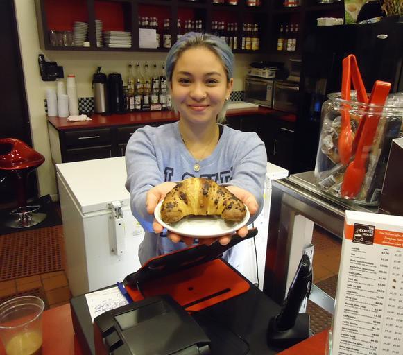 | Keywords: Edison NJ The Coffee House hostess serves pastry.JPG en Hostess at The Coffee House restaurant in Edison New Jersey serving a croissant 2014-05-24 sf Tomwsulcer Consent cc-zero 2014 in New Jersey Colorful hair Croissant Edison New Jersey May 2014 in the United States May 2014 photographs People of the United States in 2014 Restaurants in New Jersey Restaurants in the United States photographed in 2014 Portrait photographs of women smiling Uploaded with UploadWizard Waitresses of the United States Photographs taken on 2014-05-24 |
