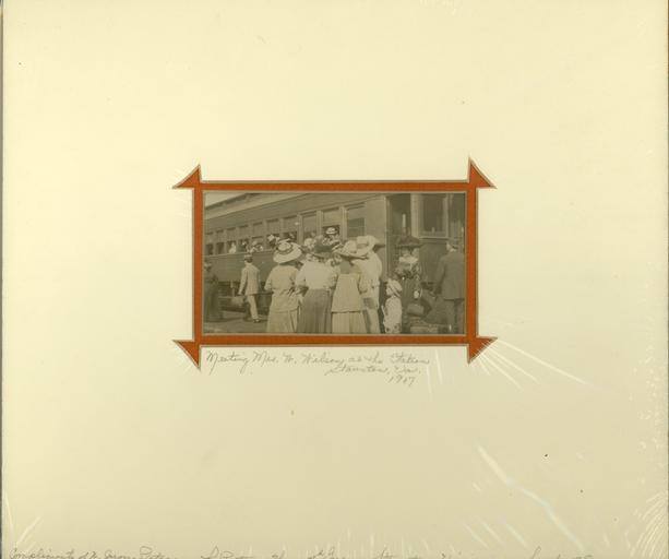 | Keywords: edith bolling galt edithbollinggalt train railway station railwaystation Local Accession Number: 1390 Description: Mrs. Wilson photographed at the railway station in Staunton, VA. Photographer: Unknown Source: W. Jerome Patterson Size: 2.5x4 Medium: Print, Black and White Date: 1917 Local Accession Number: 1390 Description: Mrs. Wilson photographed at the railway station in Staunton, VA. Photographer: Unknown Source: W. Jerome Patterson Size: 2.5x4 Medium: Print, Black and White Date: 1917 |