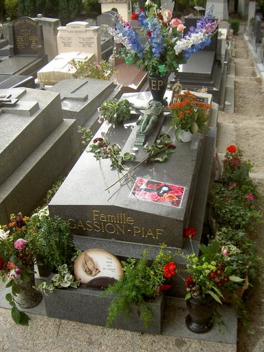Keywords: edith piaf tomb peace cemetery monument flowers recognition star death singer paris actor