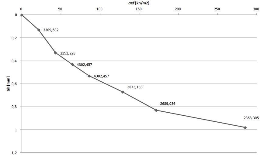 Keywords: Edometricka zkouska.jpg en The resulting curve of oedometric test On the x axis is the effective stress and on the y axis compression cs Výsledná křivka z edometrické zkoušky Na ose x leží efektivní napětí a na ose y stlačení Michal Šobr Michal Šobr 2011-12-12 Geotechnics Cc-zero |