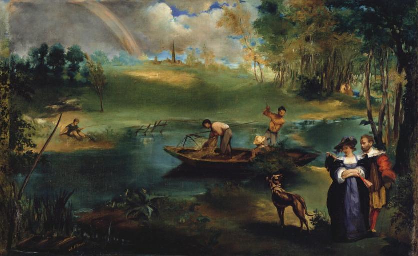 | Keywords: Édouard Manet - Fishing.JPG Oil canvas cm 76 8 123 2 Institution Metropolitan Museum of Art New York accession number object history credit line user Rlbberlin own PD-old-100 Paintings of boats by Édouard Manet 1863 Paintings by Édouard Manet in the Metropolitan Museum of Art Rainbows in paintings People with dogs in art |