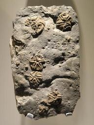 | Keywords: Edriocaster bigsbyi, sea urchins, Ordovician, Bobcaygeon Formation, Steinbruch Cardin, Brechin, Ontario, Canada - Houston Museum of Natural Science - DSC01502.JPG Exhibit in the Houston Museum of Natural Science Houston Texas USA Photography was permitted in the museum without restriction Daderot 2012-10-22 14 10 52 Daderot cc0 cc0 Fossils in the Houston Museum of Natural Science Edriocaster bigsbyi Ordovician fossils from Canada Geology of Ontario | ||||