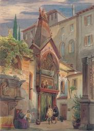 | Keywords: Eduard Gerhardt Scaliger-Gräber in Verona.jpg Ansicht der Scaliger-Gräber in Verona Aquarell 31 x 25 5 cm http //www bassenge com/ 1845 Creator Eduard Gerhardt PD-old-100 Eduard Gerhardt Graves in art 1845 paintings Watercolor paintings Images from Galerie Bassenge Verona in art Cangrande della Scala's grave |