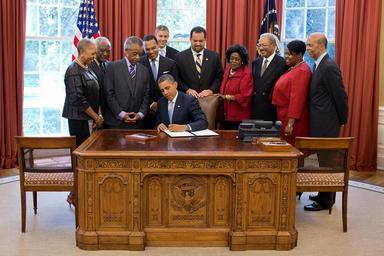 Keywords: Educational Excellence for African Americans Executive Order Signing.jpg en President Barack Obama signs the White House Initiative on Educational Excellence for African Americans Executive Order in the Oval Office July 26 2012 Standing behind the President from left are Patricia Coulter CEO National Urban League of Philadelphia; Rep Danny Davis D- Ill ; Reverend Al Sharpton; Dr Freeman Hrabowski President of University of Maryland Baltimore College; Secretary of Education Arne Duncan; Benjamin Jealous President of the NAACP; Ingrid Saunders- Jones Chair of the National Council of Negro Women; Rep Chaka Fattah D-Pa ; Kaya Henderson Chancellor of DC Public Schools; and Michael Lomax President of the United Negro College Fund Official White House Photo by Pete Souza This official White House photograph is in the public domain from a copyright perspective so while restrictions such as personality or privacy rights may apply in general manipulations are allowed Ê 2012-07-26 12 15 24 https //www flickr com/photos/whitehouse/7651674282/in/photolist-cE9QbE-cEBDr1 United States Government other versions PD-USGov Uploaded with UploadWizard White House in 2012 Higher education African American history Barack Obama in 2012 University of Maryland Baltimore County NAACP Danny K Davis Al Sharpton Arne Duncan Chaka Fattah