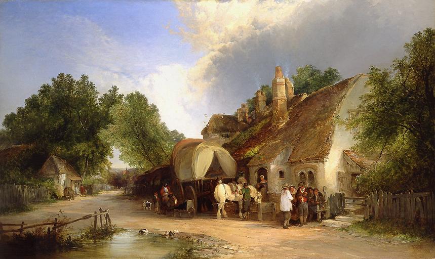 | Keywords: Edward Charles Williams00.jpg  en The Old Roadside Inn Oil on canvas in 29 5 50 http //www rehs com/victorian_landscape_art_virtex htm Rehs Galleries Inc NYC Edward Charles Williams Edward Charles Williams 1807-1881 signature bottom right 1859 PD-old-100 Edward Charles Williams Old Roadside Inn William Shayer Barnes School Victorian landscape artists Landscape paintings of the United Kingdom 19th-century landscape paintings Paintings of cottages 19th-century paintings of buildings Stagecoaches in art |