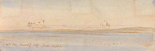 Keywords: Edward Lear - Deir Kadige - Google Art Project.jpg Inscribed in artist's hand in pen and brown ink center pale w ; in artist's hand in pen and brown ink center right green ; in artist's hand in pen and brown ink lower left 4 40 PM March 7 1867 Deir Kadige ; in artist's hand in pen and brown ink lower right dark grey water Inscription _Signed_and_Dated not signed Not on View Watercolor with pen and brown ink and graphite on medium slightly textured cream wove paper palm trees water domes river structures single built works buildings landscape desert special url_id HgEu8uIaoixeVQ PD-old-100-1923 1888 Egypt by Edward Lear Google Art Project works by Edward Lear