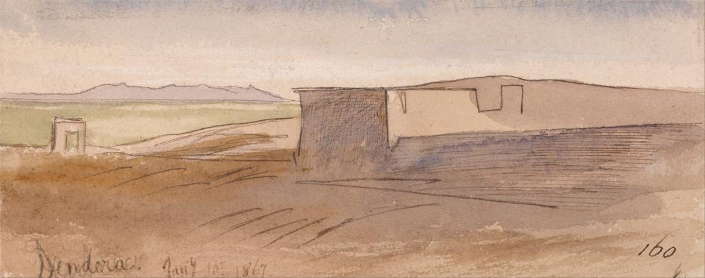 | Keywords: Edward Lear - Dendera - Google Art Project.jpg inscribed in brown ink lower left Dendera Jany 15 1867 ; in brown ink lower right 160 ; Verso in graphite center 37 up middle - left Not on View Watercolor with pen in brown ink over graphite on moderately thick slightly textured cream wove paper architectural subject sand temple ruins river landscape desert special url_id 4QHTgNWvqDhEbw PD-old-100-1923 1888 Egypt by Edward Lear Dendera Google Art Project works by Edward Lear | ||||