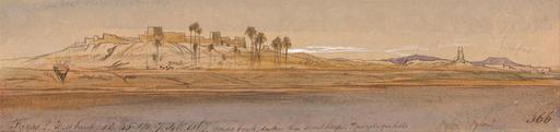 | Keywords: Edward Lear - Faras Westbank - Google Art Project.jpg inscribed in brown ink lower left - lower right Faras West bank 12 45 PM 7 Feby 1867 Horises brick darker than sand heaps purple for hills Pylon 366 ; Verso in graphite upper center - lower center B up 9;7 next above lowest Not on View Watercolor with pen in brown ink and white gouache over graphite on moderately thick moderately textured brown wove paper sky palm trees sand water structures structural elements hills landscape special url_id PQFS1zfg-3o1hw PD-old-100-1923 1888 Egypt by Edward Lear Google Art Project works by Edward Lear Faras 1867 Faras fort |
