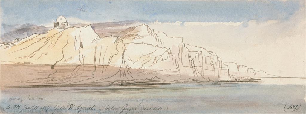 | Keywords: Edward Lear - Gebel el Azerat (below Girgeh, east side) - Google Art Project.jpg inscribed in gray ink lower left 4 PM Jany 11 1867 Gebel El Azerat - below Gergeh East side ; in gray ink lower right 131 ; Verso in graphite upper lsft 30 up ; in graphite center next below Top Not on View Watercolor in pen with gray and brown ink over graphite on moderately thick slightly textured cream wove paper sky water cliffs river riverbank landscape special url_id KgGco1bAi9h8ug PD-old-100-1923 1888 Egypt by Edward Lear Nile in art Google Art Project works by Edward Lear |