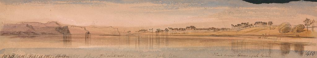 | Keywords: Edward Lear - Ibreem - Google Art Project.jpg inscribed in brown ink lower left 10 30 AM Feby 11 1867 Ibreem ; in brown ink lower right 410 ; Verso in graphite upper left 240 109 up ; in graphite center next above lowest Not on View Watercolor with pen in brown ink over graphite on moderately thick slightly textured beige wove paper sky palm trees water riverbank landscape special url_id 0wFm8a-uCUDHuA PD-old-100-1923 1888 Nubia in art Qasr Ibrim Egypt by Edward Lear Historical images of Sudan Nile in Sudan Nile in art Google Art Project works by Edward Lear |