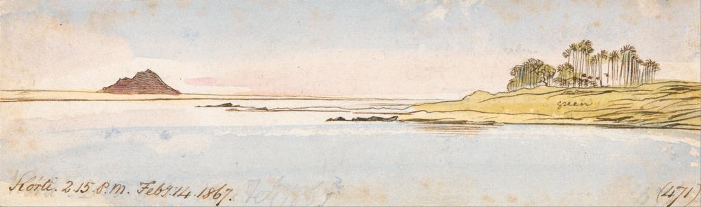 | Keywords: Edward Lear - Korti - Google Art Project.jpg inscribed in brown ink lower left Korti 2 15 PM Feby 14 1867 ; in brown ink lower right 471 Not on View Watercolor with pen in brown ink over graphite on medium slightly textured wove paper mounted on moderately thick moderately textured cream wove paper sky palm trees water river riverbank hill landscape special url_id XwFjnWY19i-MaQ PD-old-100-1923 1888 Paintings by Edward Lear Google Art Project works by Edward Lear Historical images of Sudan |