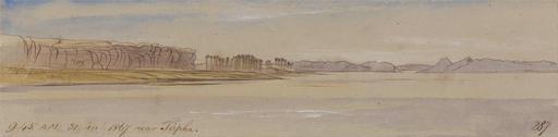 Keywords: Edward Lear - Near Tapha, 9-45 am, 31 January 1867 (287) - Google Art Project.jpg inscribed in brown ink lower left 9 45 AM 31 Jany 1867 near Tapha ; in brown ink lower right 287 ; Verso in graphite upper left 77 up Top Not on View Watercolor with pen in brown ink and gouache over graphite on moderately thick moderately textured cream wove paper sky palm trees rocks water river landscape special url_id uwESt50NDHDruQ PD-old-100-1923 1888 Egypt by Edward Lear Google Art Project works by Edward Lear |