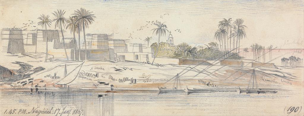 Keywords: Edward Lear - Negadeh, 1-45 pm, 17 January 1867 (190) - Google Art Project.jpg Google Art Project watercolor London 1812 San Remo 1888 Edward male 2324653 Lear British 1812 - 1888 /collection/yale-center-for-british-art/artwork/negadeh-145-pm-17-january-1867-190-edward-lear/2292920/ Edward Lear Artist /artist/edward-lear/4129607/ 4129607 /collection/yale-center-for-british-art/ Yale Center for British Art 2305845 http //britishart yale edu/ 2/23/2012 10 19 54 PM /collection/yale-center-for-british-art/artwork/negadeh-145-pm-17-january-1867-190-edward-lear/2292920/ 1867 1867 birds sky palm trees water river buildings landscape marine art boats Watercolor with pen in gray and green chalk and gouache over graphite on moderately thick moderately textured beige wove paper 94 2292920 False 1867 3/24/2012 11 05 34 AM YCBA/lido-TMS-5162 http //collections britishart yale edu/vufind/Record/1669412 Yale Center for British Art Gift of Donald C Gallup BA 1934 PhD 1939 painting 1860 1870 London Creation w243 x h94 cm 1867 False 2 62564102564103 Item negadeh-145-pm-17-january-1867-190-edward-lear Negadeh 1 45 pm 17 January 1867 190 n 243 inscribed in black ink lower left 1 45 PM Nagadeh 17 Jany 1867 ; in black ink lower right 190 ; Verso in graphite upper left 48 up middle Not on View Watercolor with pen in gray and green chalk and gouache over graphite on moderately thick moderately textured beige wove paper birds sky palm trees water river buildings landscape marine art boats special url_id KQHz1OWEDcSwQA PD-old-100-1923 1888 Egypt by Edward Lear Google Art Project works by Edward Lear