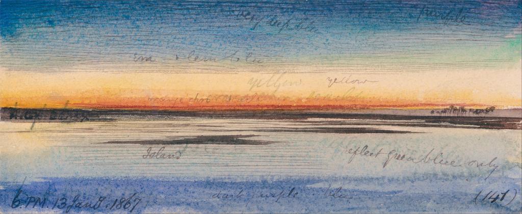 | Keywords: Edward Lear - Sunset along the Nile - Google Art Project.jpg inscribed in brown ink lower left 6 PM 13 Jany 1867 ; in brown ink lower right 141 Not on View Watercolor with pen in brown ink over graphite on moderately thick slightly textured cream wove paper mounted on moderately thick slightly textured cream wove paper sky sunset water river island landscape special url_id sgE3glz9RFSS-Q PD-old-100-1923 1888 Egypt by Edward Lear Google Art Project works by Edward Lear Nile in art | ||||
