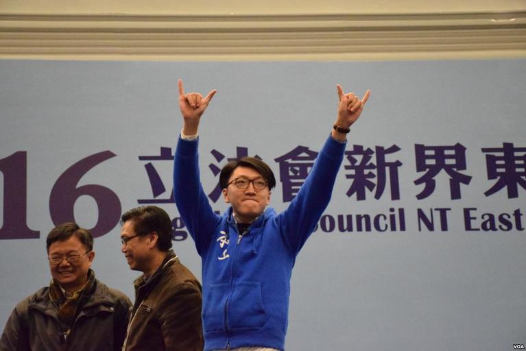 | Keywords: Edward Leung Tin-kei in 2016 by-election.jpg en No 6 candidate Edward Leung of Hong Kong Indigenous making no 6 gestures zh-hk 6號 選人 民主前線梁天琦得票超過6萬6千,他 台上雙手高舉6字手勢 2016-02-29 http //www voacantonese com/content/hk-reactions-to-nte-legislative-by-election-result/3212576 html http //www voacantonese com/content/hk-reactions-to-nte-legislative-by-election-result/3212576 html Iris Tong other versions Custom license marker 2016 02 29 VOA New Territories East by-election 2016 Edward Leung Hong Kong Indigenous Both hands gestures |