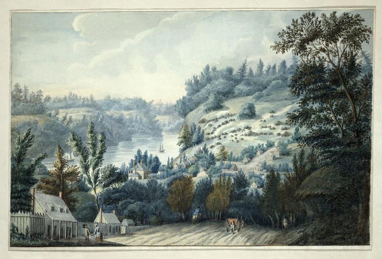 | Keywords: Edward Walsh - Queenstown, Upper Canada on the Niagara (a.k.a. Queenston, Ontario) age removed.jpg Queenstown Upper Canada on the Niagara Now known as Queenston Ontario by Edward Walsh Image dates from between 1803 and 1807 This watercolour shows the village of Queenston in the Canadian province of Ontario known as Upper Canada prior to 1841 Travelers on horseback cart and foot traverse the wide dirt road while houses are near the shore of the Niagara River Queenston is just north of Niagara Falls and the site of the the battle of Queenston Heights on October 13 1812 in the War of 1812 when the Canadians and British defeated the American forces that invaded the town Edward Walsh was a surgeon to the 49th Regiment and served in Canada from 1803-1807 Queenstown Upper Canada on the Niagara « Queenstown Haut Canada sur le Niagara » aujourd'hui Queenston Ontario par Edward Walsh Réalisé entre 1803 et 1807 <br> Cette aquarelle montre le village de Queenston en Ontario nommé « Haut Canada » jusqu'en 1841 Des voyageurs à pied à cheval et en charrette cheminent sur une large route non pavée longeant les maisons situées au bord du fleuve Niagara Queenston situé juste au nord des chutes du Niagara a été le théâtre de la bataille de Queenston Heights le 13 octobre 1812 durant la guerre de 1812 Edward Walsh était chirurgien au sein du 49 e régiment et a été mobilisé au Canada de 1803 à 1807 ppmsca 01656 between 1803 1807 Edward Walsh 1756-1832 PD-Old-100 Image Edward Walsh - Queenstown Upper Canada on the Niagara a k a Queenston Ontario jpg - Restored JPG Image Edward Walsh - Queenstown Upper Canada on the Niagara a k a Queenston Ontario png - Restored PNG Image Edward Walsh - Queenstown Upper Canada on the Niagara a k a Queenston Ontario age removed png - A more extensive restoration - rather farther than I prefer - showing the image with the natural yellowing removed Image Edward Walsh - Queenstown Upper Canada on the Niagara a k a Queenston Ontario age removed jpg - JPG of above Image Edward Walsh - Queenstown Upper Canada on the Niagara a k a Queenston Ontario - partially restored png - Partially restored PNG Image Edward Walsh - Queenstown Upper Canada on the Niagara a k a Queenston Ontario original scan png - Original scan PNG Image Edward Walsh - Queenstown Upper Canada on the Niagara a k a Queenston Ontario original scan jpg - Original scan JPG for comparison <br/> Colours adjusted more extensively than in main image to demonstrate what this would look like with a more Durovian approach to restoration Note that as white paint is used it's clear the original paper would have been at least grey Also cropped dirt and damage removed as far as I thought justified The dirt is authentic of course but much of the dirt and damage distracted from the work itself Niagara Peninsula |