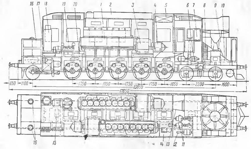 | Keywords: Eel8 shema.png Э<sup>эл</sup>8 1934 Коишин Тепловозы author Обозначения дизель Diesel engine глушитель Silencer гене ато Generator возбудитель Exciter асходный бак Supply tank вентилято для охлаждения тяговых элект одвигателей Fan for cooling traction motors пост уп авления Control panel воздушный фильт Air filter секции холодильника Section of radiator водяной бак Water tank масляные насосы Oil pumps водяные насосы Water pumps воздушный канал Air duct пе еключатель Switch насос для подкачки топлива Priming pump аккумулято ная бата ея Battery топливный бак Fuel tank котёл отопления Heating boiler то мозной комп ессо Brake compressor тяговые элект одвигатели Traction motors Custom license marker 2012 07 30 PD-old Uploaded with UploadWizard E-EL-8 |