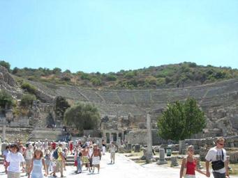 Keywords: Efez25.jpg en Ephesus Turkey the ancient theatre 2005-08-12 own assumed Mykenik~commonswiki Ancient Greek theatre Ephesus