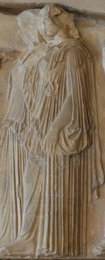 Keywords: Egastinai frieze Louvre MR825 detail.jpg Athenian woman wearing the chiton detail Fragment from the Ergastinai weavers frieze from the Parthenon in Athens Traces of ancient polychromy Pentelic marble c 445 “435 B C Athénienne portant le chiton Détail de la plaque dite « des Ergastines » tisseuses frise Est du Parthénon Athènes Marbre du Pentélique portant des traces de polychromie c 445 “435 av J -C H 96 cm 37 ¾ in Museum Louvre Ma 738 MR 825 object history credit line Acquired by the earl of Choiseul-Gouffier 1784; seized during the French Revolution accession number Department of Greek Etruscan and Roman Antiquities Sully wing ground floor Jastrow 2005 other versions Chiton 5th century BC Frieze of the Parthenon Greek antiquities in the Louvre - Room 31 Polychromy in antique art |