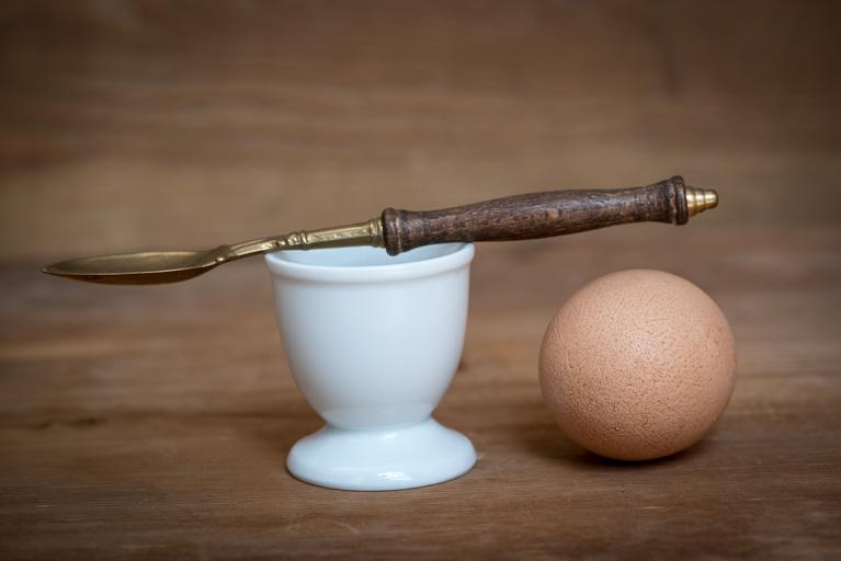 Keywords: egg hen's egg brown egg eggshell chicken product food nutrition eat oval protein close egg cups spoon food-photography still life