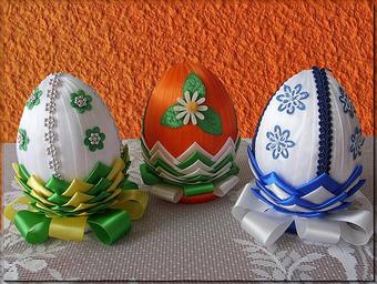 Keywords: eggs easter symbol easter decorated eggs eggs dressed needlework folk art ornament ornaments material precision the accuracy of the colorful ribbons green white blue the tradition of