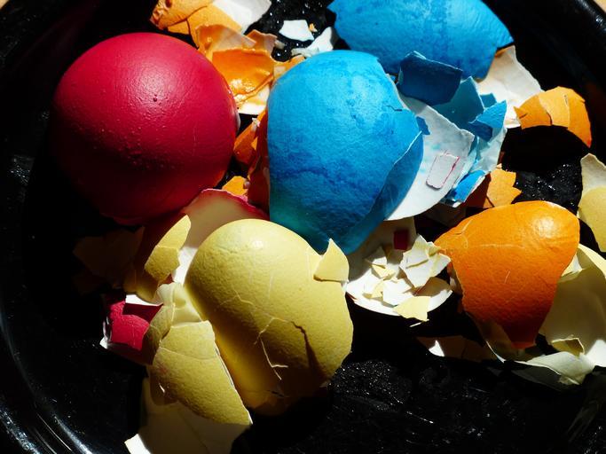 Keywords: eggshell egg easter eggs colorful color paint easter egg food remains garbage lime shell