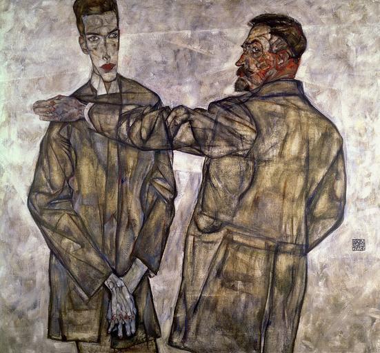 | Keywords: Egon Schiele - Doppelbildnis Heinrich und Otto Benesch.jpg Artwork Creator Egon Schiele 1913 oil canvas cm 121 130 institution Lentos Kunstmuseum Linz accession number 12 http //sammlung lentos at 8088/mboxlentos/showfilingcard m-box setmgrname mboxobj mobble a 3A3 3A i 3A0 3Bi 3A0 3Bi 3A1 3Bi 3A34 3Bi 3A2 3Bi 3A24714 3B m-box_phpsessid 43f8f565236892c6e9a4f9b6305a475c Lentos Kunstmuseum Linz object history credit line Egon Schiele 1913 ~ lower right signature and date am rechten Rand unteres Drittel Egon Schiele 1913 41186 PD-old-auto-1923 1918 Paintings by Egon Schiele Paintings in the Lentos Kunstmuseum Linz 1910s portrait paintings Portrait paintings of men Expressionist paintings 1913 paintings |