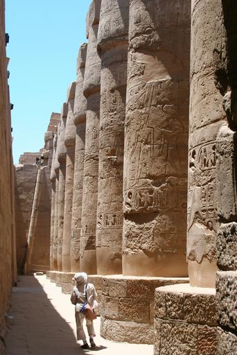 Keywords: egypt luxor karnak temple hieroglyph ancient civilization nile blue sky megalithic antomasako sculpture art pharaoh wall carnac temple beige white clothes pillar japanese coverage