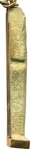 | Keywords: Egyptian - Dua-mut-ef, Son of Horus - Walters 482749 - Side A.jpg Standing figure with mummified body and jackal head In his hands the god holds a long folded linen mummy wrappings This statuette is mounted as an earring 6th-4th century BC Late Period-Greco-Roman white faience H without modern mount 1 3/16 x W 1/4 D 0 3 09 x 0 64 x 0 01 cm accession number 48 2749 38296 Ms J T Bruning Herndon Virginia date and mode of acquisiton unknown Walters Art Museum Gift of Ms J T Bruning 2001 place of origin Egypt Walters Art Museum license Ancient Egyptian amulets in the Walters Art Museum Ancient Egyptian faience in the Walters Art Museum Duamutef amulets Ancient Egyptian jewellery in the Walters Art Museum |