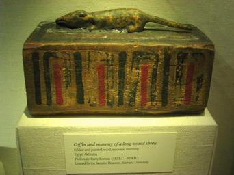 Keywords: Egyptian exhibit in Buffalo Museum of Science - IMG 3789.JPG Coffin and mummy of a long-nosed shrew Egyptian exhibit in the Buffalo Museum of Science Buffalo New York USA own 2010-01-20 Daderot Public domain Ancient Egyptian sarcophagi of animals Egyptian mummies of animals Egyptian exhibit in the Buffalo Museum of Science |