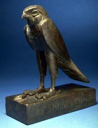 | Keywords: Egyptian - Falcon Reliquary - Walters 54547 - Three Quarter.jpg This statuette likely dedicated to the falcon-god Horus is missing its crown and eye inlays The structure of the feathers is carefully incised The base is inscribed with texts of adoration and prayer Examination through the hole in the head revealed bird bones that had been wrapped in linen and placed inside through a trap door between the statuette's legs A neutron-induced radiograph also reveals the presence of bones inside the reliquary ca 600 350 BC Late Period bronze bird bones linen cm 22 7 accession number 54 547 3683 Henry Walters Baltimore date and mode of acquisition unknown Walters Art Museum Henry Walters Acquired by Henry Walters Translation To be recited Osiris-Wennefer the Great God Lord of Heaven Royal Youth wearing the white crown who went forth from the body of the two uraeus serpents the uraeus is upon the great forehead of the one who has dwelt in the body of Nut To be recited Osiris who rules in the west may he give life health long lifetime and a long and good age to Iwer-hotep-her-nebef son of Ren-ef-hesy To Arrest the Ravages of Time Caring for Art at the Walters The Walters Art Gallery Baltimore 1996 place of origin Egypt Walters Art Museum license Ancient Egyptian statues in the Walters Art Museum Falcons in Ancient Egypt Statues of Horus Statues of the Egyptian late period Egyptian-cnḫ wḏ3 snb Egyptian mummies of falcons Egyptian linen |