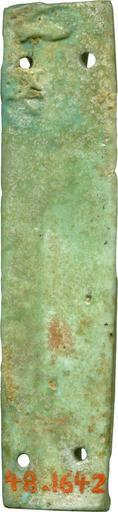 | Keywords: Egyptian - Figure of Kebehsenuef, Son of Horus - Walters 481642 - Back.jpg During the process of mummification amulets of different kinds were placed on the body or wrapped in the mummy bindings to protect the deceased from the dangers of the underworld Figures of the four Sons of Horus the gods who protected the containers that held the organs of the deceased were an indispensable part of a complete set of amulets This figure of the falcon-headed god Kebehsenuef who was responsible for the intestines is formed in the round with a backplate and a base The mummiform god has a long wig and holds a long folded cloth in each hand 1st half 4th century BC Late Period Egyptian faience with blue and black glaze cm 7 7 1 8 1 6 accession number 48 1642 40736 Henry Walters Baltimore date and mode of acquisition unknown Walters Art Museum Henry Walters Acquired by Henry Walters Faience The Colors of the Heavens The Walters Art Museum Baltimore; The Walters Art Museum Baltimore 2003-2004 Daily Magic in Ancient Egypt The Walters Art Museum Baltimore 2006-2007 Mummified The Walters Art Museum Baltimore 2008-2013 place of origin Egypt Walters Art Museum license Ancient Egyptian amulets in the Walters Art Museum Ancient Egyptian faience in the Walters Art Museum Kebehsenuf Media contributed by the Walters Art Museum needs category review |