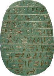 Keywords: Egyptian - Heart Scarab of Bak-en-Djehuti - Walters 42380 - Bottom.jpg The ancient Egyptians believed that the dung beetle the Scarabaeus sacer was one of the manifestations of the sun god Representations of these beetles were used as amulets and for ritual or administrative purposes This scarab is a so-called Heart scarab which was used for the deceased The linearly incised bottom inscription contains spell 30 B of the Book of the Dead The left reading text is displayed in ten lines separated by nine very straight text-divider and framed by an oval line The hieroglyphs are less detailed and slightly irregular The layout is well organized and the signs evenly spaced The back of the scarab is very high and the highest point at the partition between pronotum dorsal plate of the prothorax and elytron wing cases Both parts have incised borderlines a slightly curved double partition lines and a triple division line between the wing cases The rectangular head is flanked by quarter-spherical two-stage eyes with lid markings The side plates and the clypeus front plate are trapezoidal On the left wing case is an inscription with name and title of the owner the priest of Amun Bak-en-Djehuti and on the right wing case a crossed lines pattern and a formula wishing him life The style of the inscription on the back differs from that on the bottom and it is most likely that the text on the back with the individualization was added later by another hand The crossed lines on the right wing case are less deeply incised and might have been added later only the ankh-sign meaning life looks similar to the inscription on the left wing case The extremities have natural form and vertical and diagonal hatch lines for the tibial teeth and the pilosity hair The low oval base is slightly asymmetrical and has a smaller head The scarab was produced to be placed in the wrappings of a mummy It was individualized by his name of the deceased Bak-en-Djehuti Such funerary amulet should cause the renewal of the deceased and support him in the Weighing of the Heart procedure in the Judgement hall of the underworld between 1186 718 BC late New Kingdom-Third Intermediate grey-green greywacke cm 1 8 2 7 3 8 accession number 42 380 5996 Dikran Kelekian Paris and New York date and mode of acquisition unknown Henry Walters city Baltimore Walters Art Museum Henry Walters Acquired by Henry Walters 1911 Translation On the back of the scarab Priest of Amun Bak-en-Djehuti who is justified / May he life place of origin Egypt Walters Art Museum license Ancient Egyptian scarabs in the Walters Art Museum Heart scarabs Hieroglyphs on scarabs Fortification hieroglyph Mast hieroglyph Spindle hieroglyph Wall hieroglyph Side symbol gs hieroglyph Arm hieroglyph Balance hieroglyph Khnum-god hieroglyph Eye of Horus hieroglyph Container hieroglyph Tilapia hieroglyph Cartouche hieroglyph Shen loop hieroglyph Head of vulture hieroglyph Seth tool hieroglyph Hare wn hieroglyph Hobble tj hieroglyph Scarabs with Wish Formula Ancient Egyptian art made from greywacke