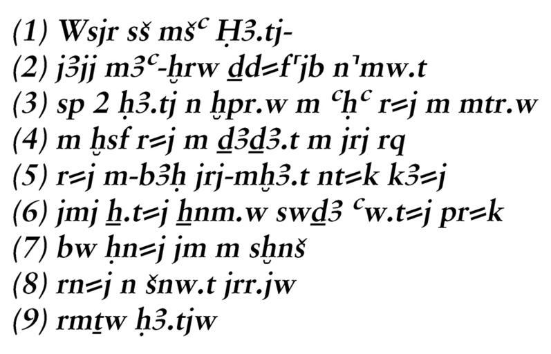 | Keywords: Egyptian - Heart Scarab of Bak-en-Djehuti - Walters 42380 - Transcription.jpg The ancient Egyptians believed that the dung beetle the Scarabaeus sacer was one of the manifestations of the sun god Representations of these beetles were used as amulets and for ritual or administrative purposes This scarab is a so-called Heart scarab which was used for the deceased The linearly incised bottom inscription contains spell 30 B of the Book of the Dead The left reading text is displayed in ten lines separated by nine very straight text-divider and framed by an oval line The hieroglyphs are less detailed and slightly irregular The layout is well organized and the signs evenly spaced The back of the scarab is very high and the highest point at the partition between pronotum dorsal plate of the prothorax and elytron wing cases Both parts have incised borderlines a slightly curved double partition lines and a triple division line between the wing cases The rectangular head is flanked by quarter-spherical two-stage eyes with lid markings The side plates and the clypeus front plate are trapezoidal On the left wing case is an inscription with name and title of the owner the priest of Amun Bak-en-Djehuti and on the right wing case a crossed lines pattern and a formula wishing him life The style of the inscription on the back differs from that on the bottom and it is most likely that the text on the back with the individualization was added later by another hand The crossed lines on the right wing case are less deeply incised and might have been added later only the ankh-sign meaning life looks similar to the inscription on the left wing case The extremities have natural form and vertical and diagonal hatch lines for the tibial teeth and the pilosity hair The low oval base is slightly asymmetrical and has a smaller head The scarab was produced to be placed in the wrappings of a mummy It was individualized by his name of the deceased Bak-en-Djehuti Such funerary amulet should cause the renewal of the deceased and support him in the Weighing of the Heart procedure in the Judgement hall of the underworld between 1186 718 BC late New Kingdom-Third Intermediate grey-green greywacke cm 1 8 2 7 3 8 accession number 42 380 5996 Dikran Kelekian Paris and New York date and mode of acquisition unknown Henry Walters city Baltimore Walters Art Museum Henry Walters Acquired by Henry Walters 1911 Translation On the back of the scarab Priest of Amun Bak-en-Djehuti who is justified / May he life place of origin Egypt Walters Art Museum license 2D Ancient Egyptian scarabs in the Walters Art Museum Hieroglyphs on scarabs Heart scarabs Media contributed by the Walters Art Museum needs category review Scarabs with Wish Formula |