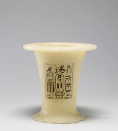 Keywords: Egyptian - Jubilee Vessel of Pepi I - Walters 4128.jpg The beautiful hieroglyphs on this vessel identify its owner and the ritual in which it was used On the left is King Pepi I's Horus name one of a king's five names Beloved of the Two Lands Egypt At center is his throne name Mery-re; below are brief symmetrical texts reading given life and dominion forever On the right is a text First day of the Sed-festival If an Egyptian king reigned for thirty years he performed a ritual of renewal the Sed-festival in which this vessel would have been used ca 2290 BC Old Kingdom alabaster calcite and pigment bottom cm 14 5 10 7 h x diam ; top cm 14 4 diam accession number 41 28 15119 Dikran Kelekian Paris and New York Henry Walters city Baltimore Walters Art Museum Henry Walters Acquired by Henry Walters 1914 Translation The Horus Mery-tawy Beloved of the Two Lands ; King of Upper and Lower Egypt Mery-re Beloved of Re ; First occasion of the Sed-festival; Given life and dominion forever given life and dominion forever; Translation Right column First of the Sed Festival Middle column King of Upper and Lower Egypt Mery-Ra Left column Horus name Mery-tawy ; Horizontally Given life and happiness forever this twice place of origin Saqqara Egypt Walters Art Museum license Pepi I Sed festival Ointment vessel-Alabastron Works of the 6th dynasty of Egypt 24th-century BC works Hieroglyphs on jars and bowls Dagger tp hieroglyph Festival pavilion hieroglyph Tent and basin hieroglyph Conical bread hieroglyph Ancient Egyptian art in the Walters Art Museum Old age in Ancient Egypt Ancient Egyptian art made from alabaster Egyptian stone bowls vessels |