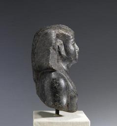 Keywords: Egyptian - King - Walters 22351 - Right Side.jpg Both continuity and change are reflected in this portrait bust initially carved for a ruler of the Middle Kingdom and then re-carved for a New Kingdom monarch There was a marked change between the way late 12th Dynasty and mid 19th Dynasty kings were represented The pharaohs of the 12th Dynasty wished to present an experienced and careworn expression This is conveyed by heavy eyelids wrinkles and a firm set to the mouth The pharaohs of the 19th Dynasty however wanted their images to suggest youth vigor and confidence To transform a Middle Kingdom royal image into a New Kingdom one sculptors re-carved the face The eyes nose and forehead of this sculpture show evidence of reworking to erase signs of age while the corners of the mouth were deeply drilled to make the cheeks appear rounder and to bring the lips closer to the slight smile typical of 19th Dynasty royal sculpture Original work ca 1872-1806 BC ; Reworking ca 1250 BC Middle Kingdom; New Kingdom anorthosite gneiss cm 22 18 5 11 accession number 22 351 2362 Dikran Kelekian New York and Paris Henry Walters city Baltimore Walters Art Museum Henry Walters Acquired by Henry Walters 1912 Egypt in Africa Indianapolis Museum of Art Indianapolis 1996 place of origin Egypt Walters Art Museum license Ancient Egyptian statues in the Walters Art Museum Unknown pharaohs Media contributed by the Walters Art Museum needs category review