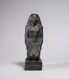 | Keywords: Egyptian - Kneeling Figure of Hor-wedja - Walters 2279.jpg Hor-wedja was the son of Vizier Sasobek the highest-ranking official during the reign of King Psammetichus I Hor-wedja's son Meryptah commissioned this temple sculpture for him Hor-wedja kneels presenting only himself to his god He abases himself in the deity's presence but keeps his head erect expressing respect and confidence A hieroglyphic inscription gives the lineage and titles of Hor-wedja running in a horizontal band around the base in a line across the top of the base and in a single vertical column on the back pillar Hor-wedja kneels upon a rectangular base and his toes are splayed out in an unnatural way He wears a belted shendyt and a simple bag wig The wide width of the wig is common for the Saite Period The orientation of the wig onto the top of the back pillar is echoed in other sculptures from the 26th Dynasty through the reign of Apries As is characteristic for the Saite Period his image is quite idealized The body appears strong but the definition of the musculature is subtle A strong median line is visible His hands are placed flat upon his thighs and appear unusually plump His facial features are also typical for the Saite Period long almond-shaped eyes with straight brows above long smooth cheeks a long straight nose and a softly smiling mouth The statue is well preserved and the polish is only marred by a few minor nicks ca 640 620 BC Late Period graywacke cm 37 5 11 3 19 8 accession number 22 79 8349 Cairo Museum Cairo CG 669 Henry Walters Baltimore date and mode of acquisition unknown Walters Art Museum Henry Walters Acquired by Henry Walters Translation His son who makes his name live the prophet-priest the chief overseer of the estate Mery-ptah; Translation An offering which he gives to Ptah-Sokar-Osiris that he may give funerary offerings of bread beer oxen and fowl to the prophet-priest and leader of the houses Hor-wedja; Translation The revered before Ptah-Sokar the prophet-priest of Anubis of Ro-setaw the leader of the houses of Neith of Sais the great one of the Two Lands his beloved son the priest of Neith Hor-wedja The revered before Hathor the mistress of the Southern Sycamore the prophet-priest Hor-wedja son of a man with the same titles the prophet-priest of Ptah the governor of the capital the vizier Sa-Sobek Ägypten Griechenland Rom Abwehr und Berührung Staedtische Galerie Liebieghaus Frankfurt am Main 2005-2006 place of origin Egypt Walters Art Museum license Ancient Egyptian statues in the Walters Art Museum Media contributed by the Walters Art Museum needs category review High priest of Ra Ancient Egyptian priests Ancient Egyptian art made from greywacke |